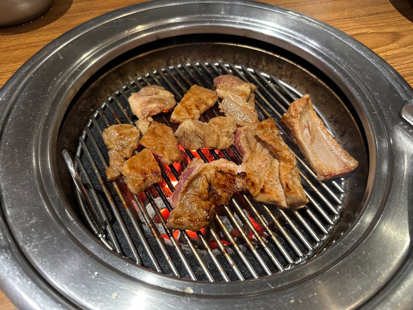 저렴한 돼지갈비에 좋은 숯 기대하긴 어렵고,