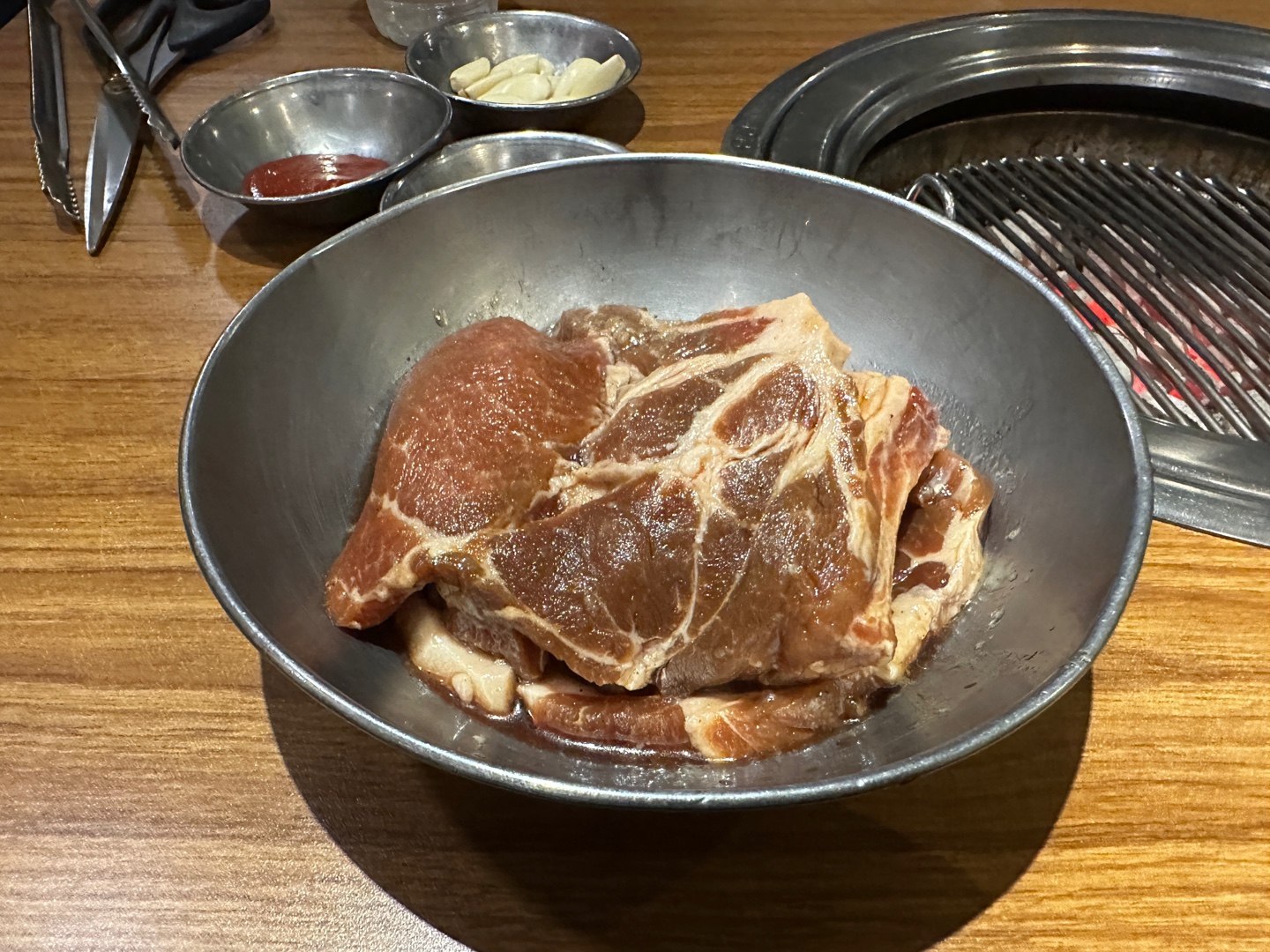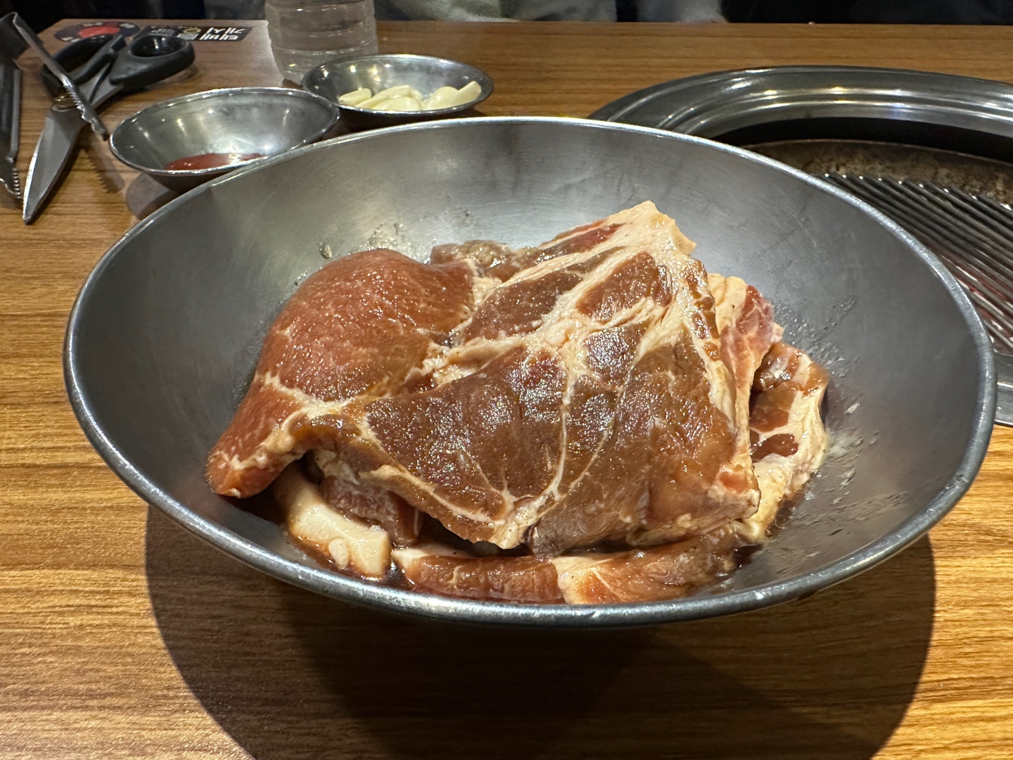 목심과 갈비부분 섞인 조박집의 돼지갈비.